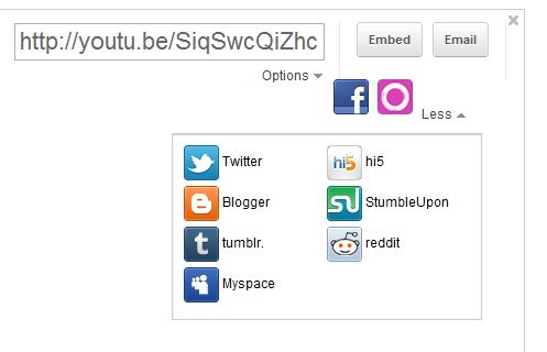 To share users has to visit the YouTube video page. But now YouTube has rolled out two new drop-down button in the embedded videos which allow users to view the infromation of videos as well directly share it to Social media sites without leaving the site.